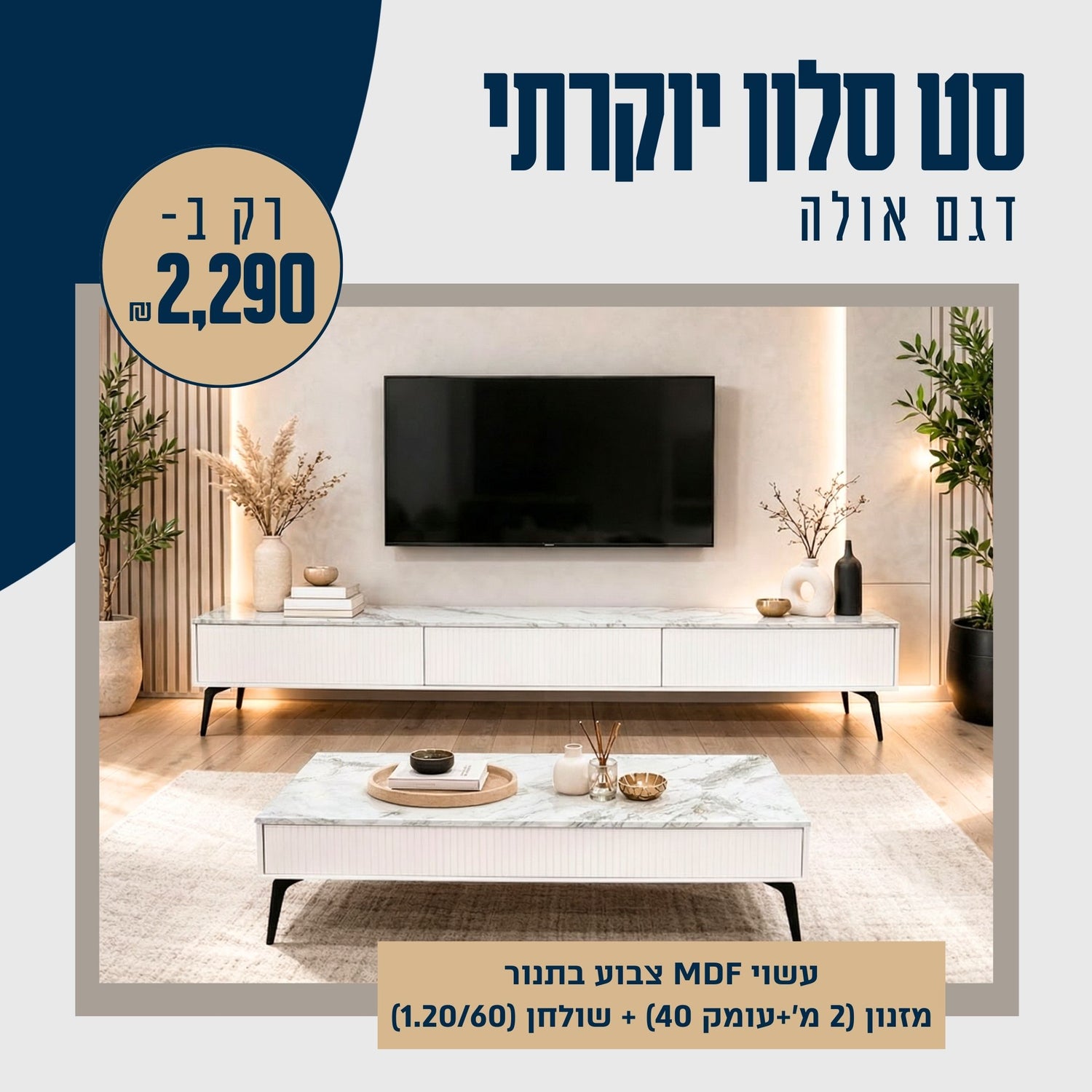 דגם אולה סט סלון מזנון ושולחן